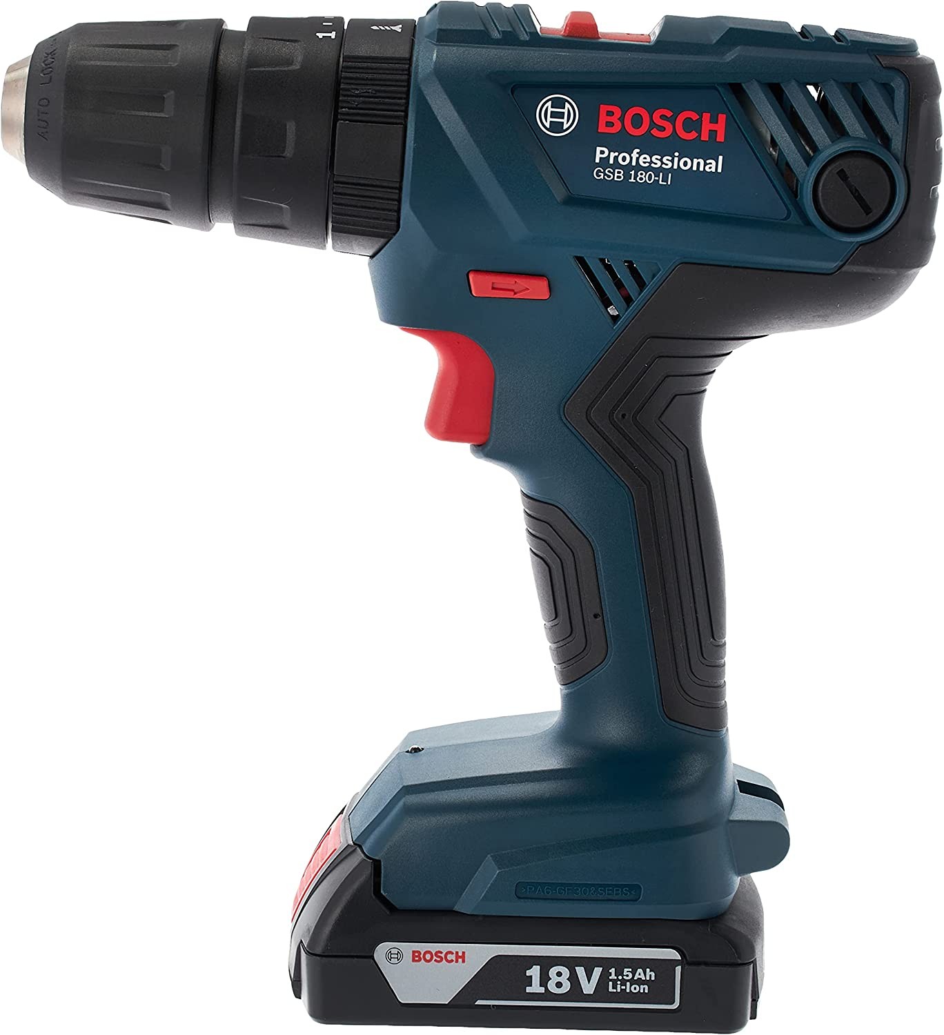 • Changeable Carbon brushes extends the lifetime of the motor. Electronic cell protection protects the tool and battery. Tool status feedback a blinking LED lets you know if the tool has been cut off to protect itself due to electronic cell protection or current overload. Optimized torque for screw driving and speed for drilling thanks to 2-speed planetary gearbox. Convenient change of accessories key less chuck opens and closes easily. Easy and precise control of the RPM thanks to variable speed. Battery 100% compatible with all tools within its voltage class choose the XL battery for longest run time or the compact battery for best handling. Technical data: Specification overview: Torque (soft/hard/max) - 21/54/- NM No-load speed (1st gear / 2nd gear) - 0 - 450 / 0 - 1700 rpm Battery type - Lithium-ion Max. impact rate - 0 bpmBattery voltage - 18 VTorque settings - 20+2Drilling diameter:Max. drilling diameter in wood - 35 mmMax. drilling diameter in steel - 10 mmMax. drilling diameter in masonry - 8 mmScrew diameter:Max. screw diameter - 10 mmItem Included:2 x 1.5 Ah Li-ion batteryAL 1814 CV chargerCarrying caseColor - BlueBrand : BoschPower Source : BatteryType : Power HammersModel Number : GSB180-LIAre batteries needed to power the product or is this product a battery : YesIs this a Dangerous Good or a Hazardous Material, Substance or Waste that is regulated for transportation, storage, and/or disposal? : No