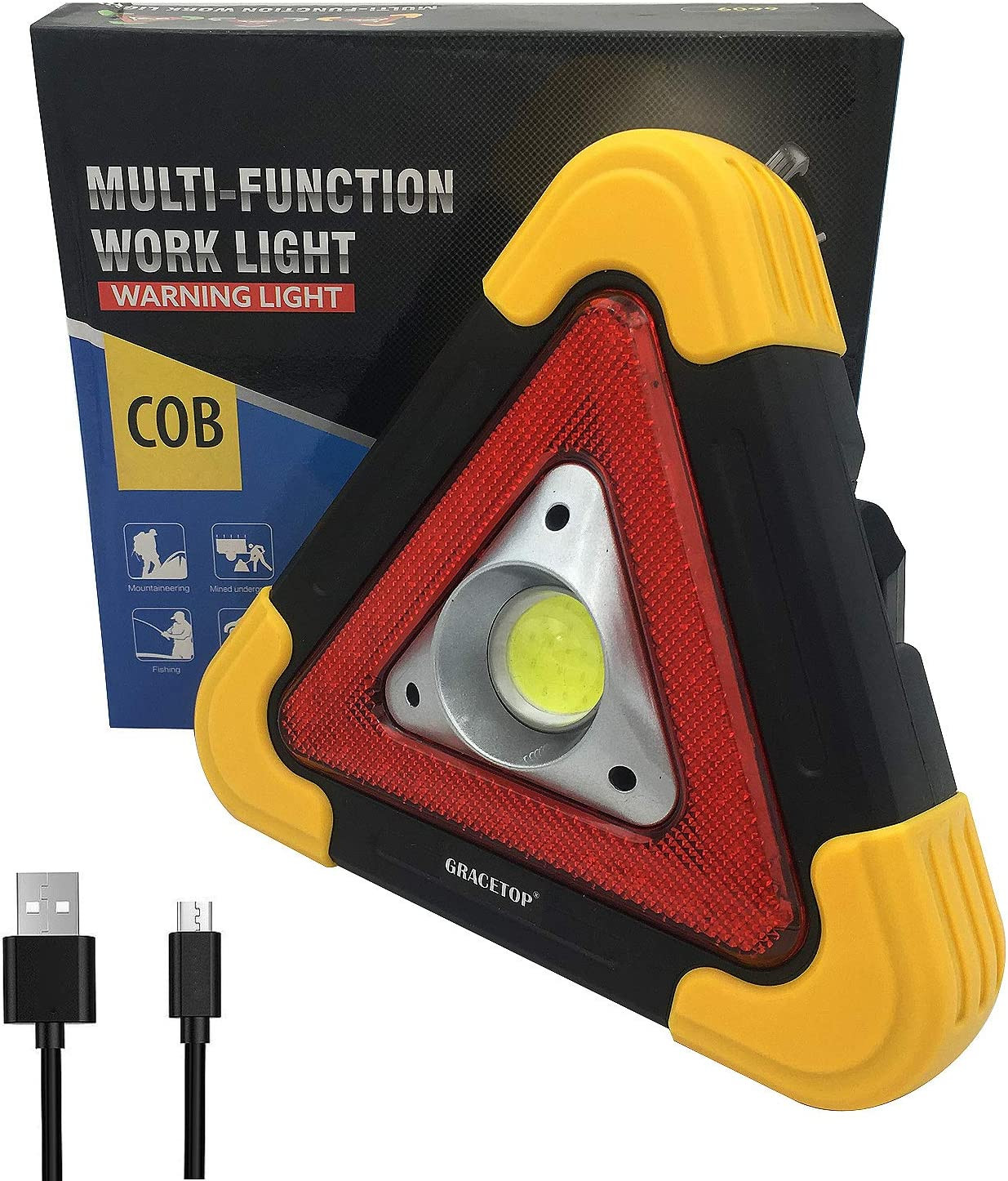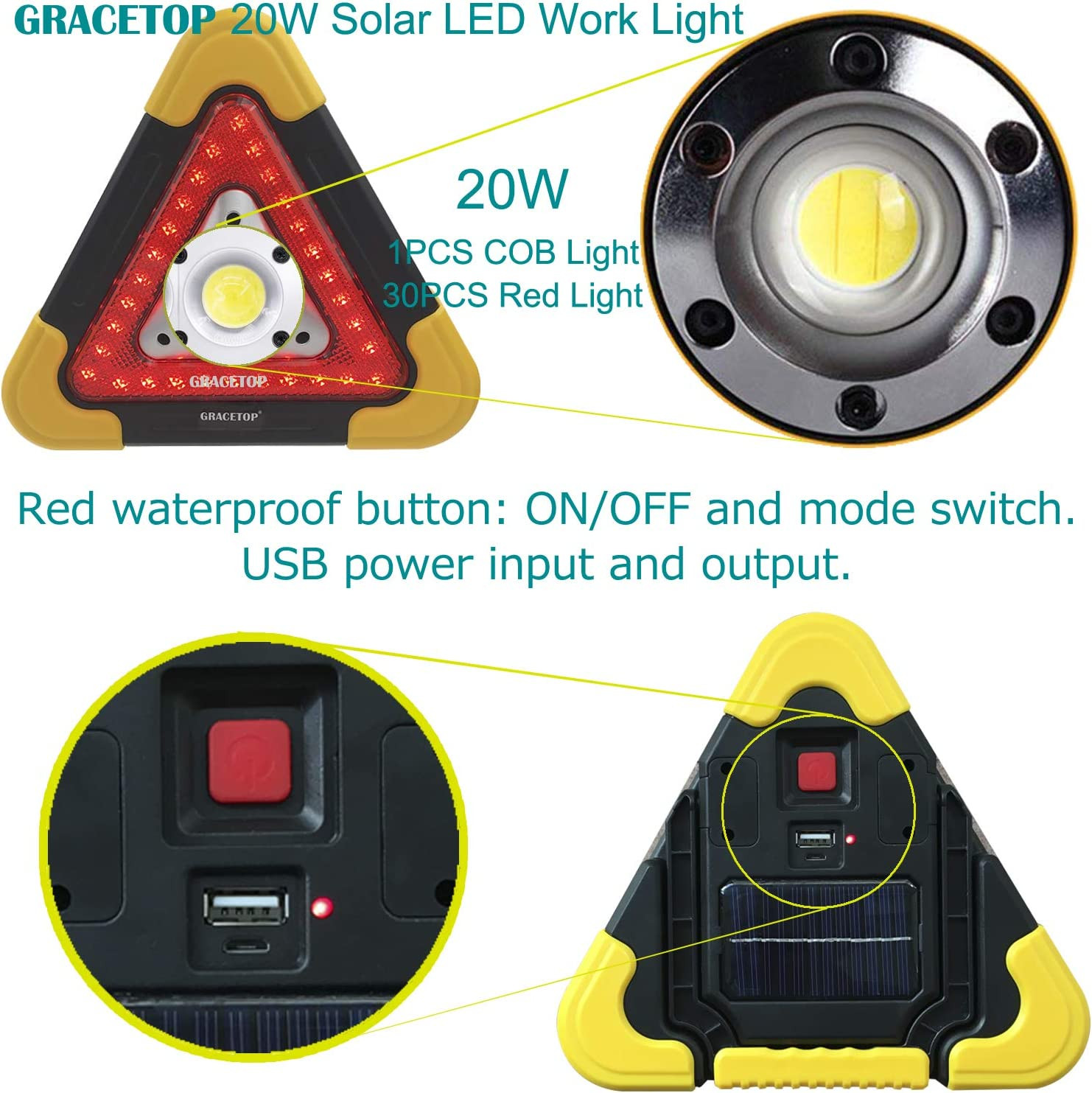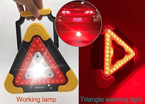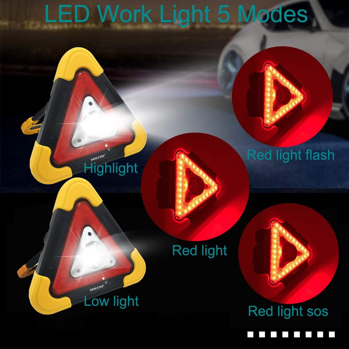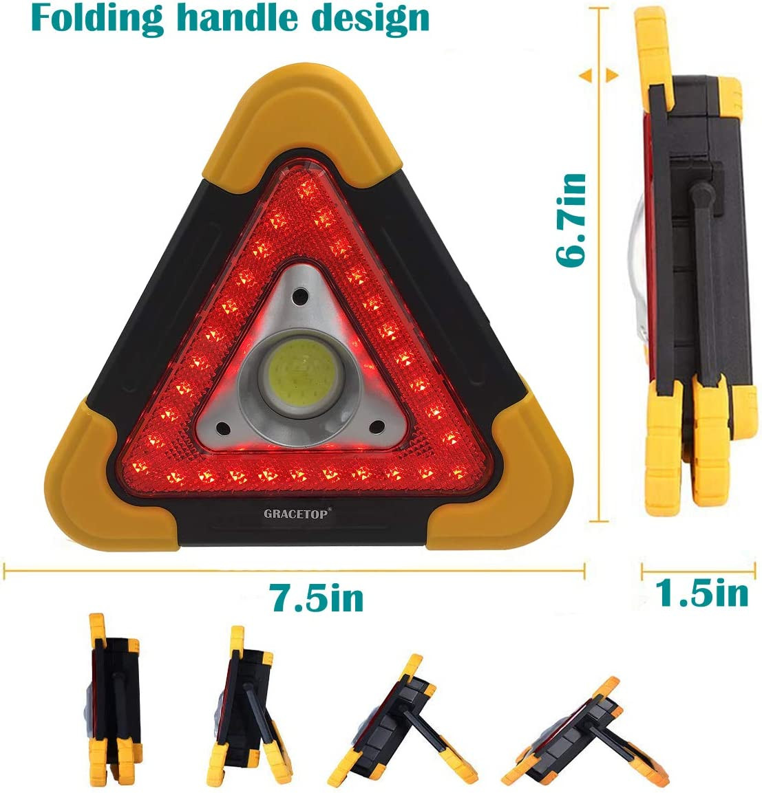 • The triangular red light is suitable for road emergency warning lights.5 Mode: LED strong light - LED low light - Red Light - Red Light Flash - Red light SOS, brightness can be adjusted to meet the lighting needs. high-intensity SMD LED, higher brightness, longer lifetime.