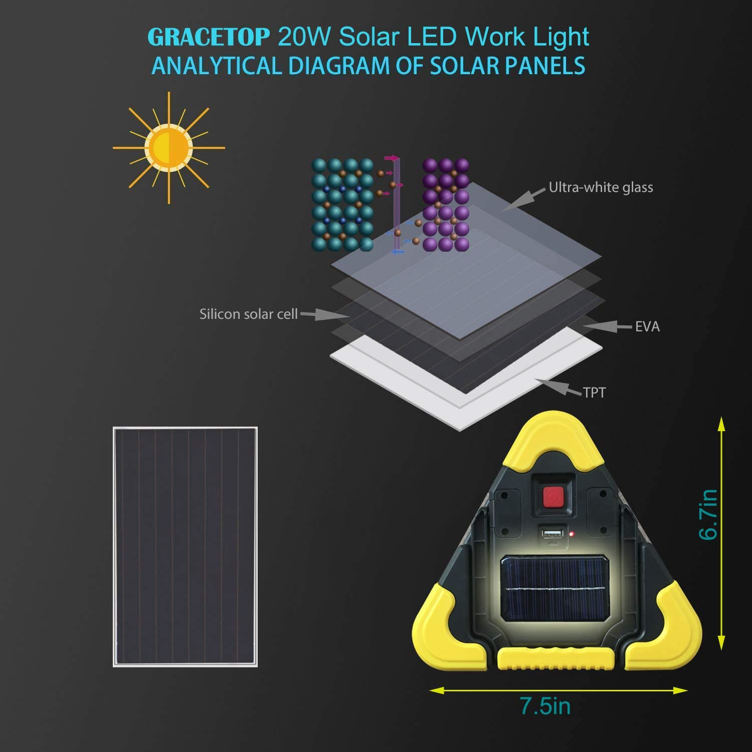 • Solar Work light widely applicable Solar Portable light for Home Basement, job site work lighting, Warehouses, Garage, Office, Camping, Mining Sites, Construction, Barbecue, Shop Hoardings, Parking Lots, Night Fishing, Car Road warning light etc.