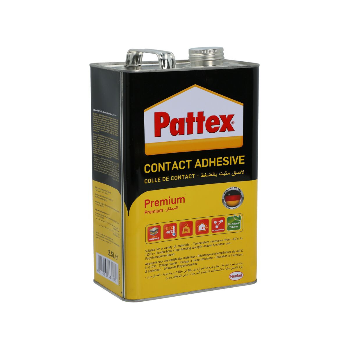 • Adhere various building materials with the Pattex Contact Adhesive 2.5 Liter. It is developed with a high-strength formula that provides a strong, permanent bond to multiple substrates.