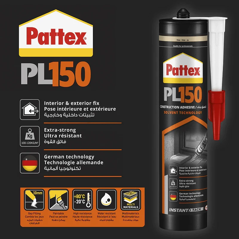 • Pattex PL 150 construction adhesive is an advanced, professional