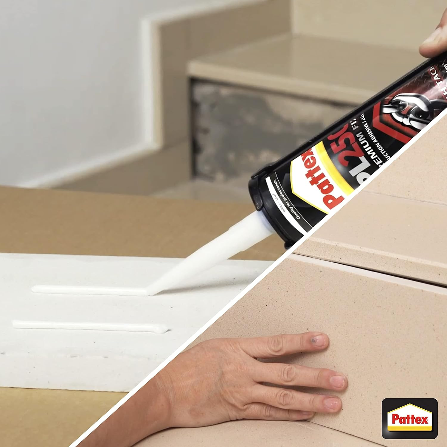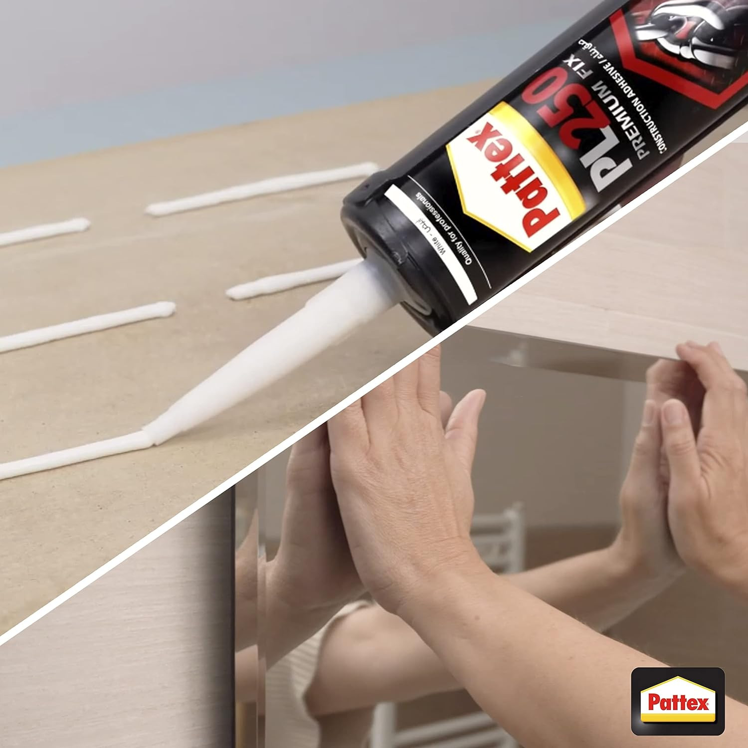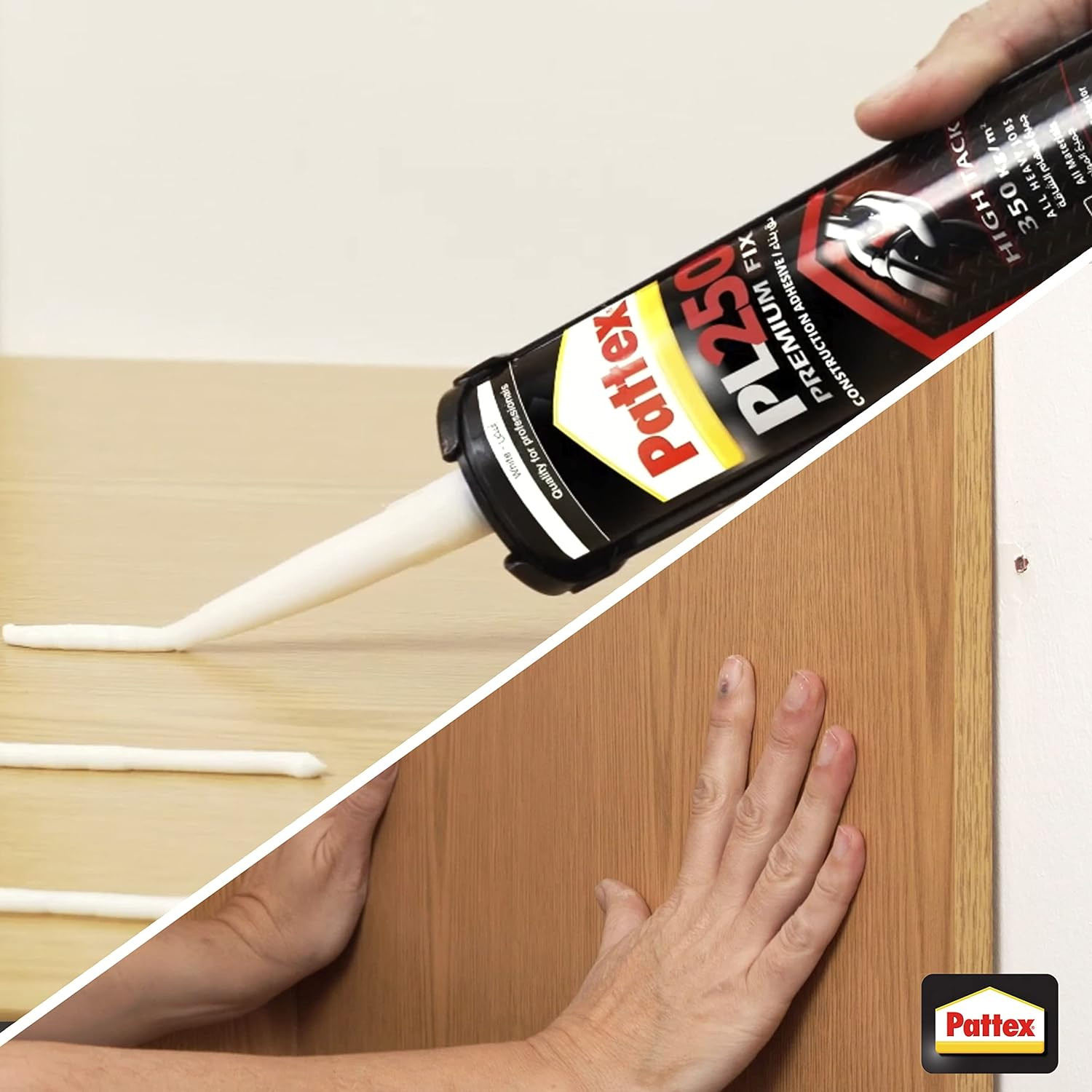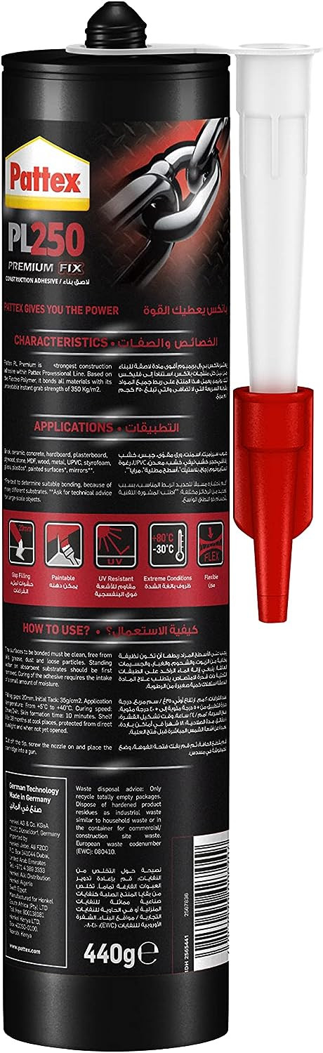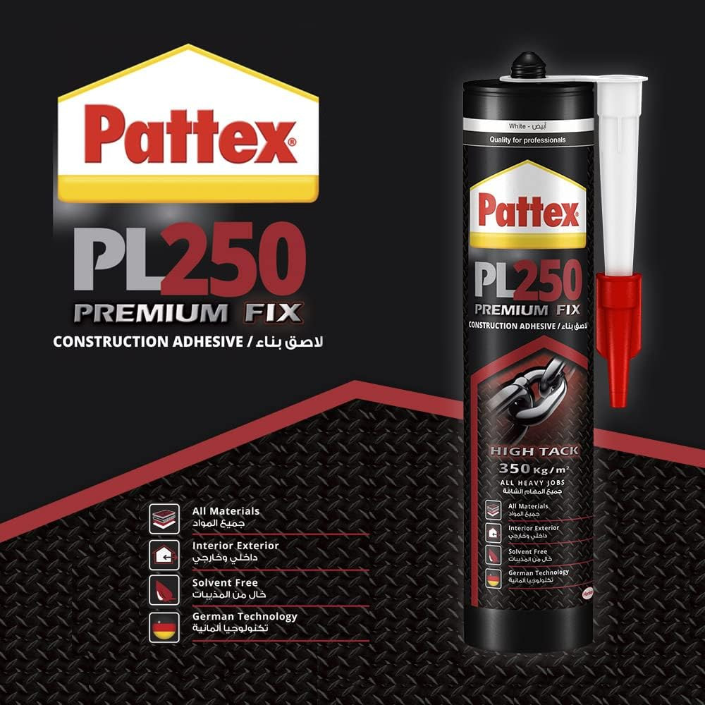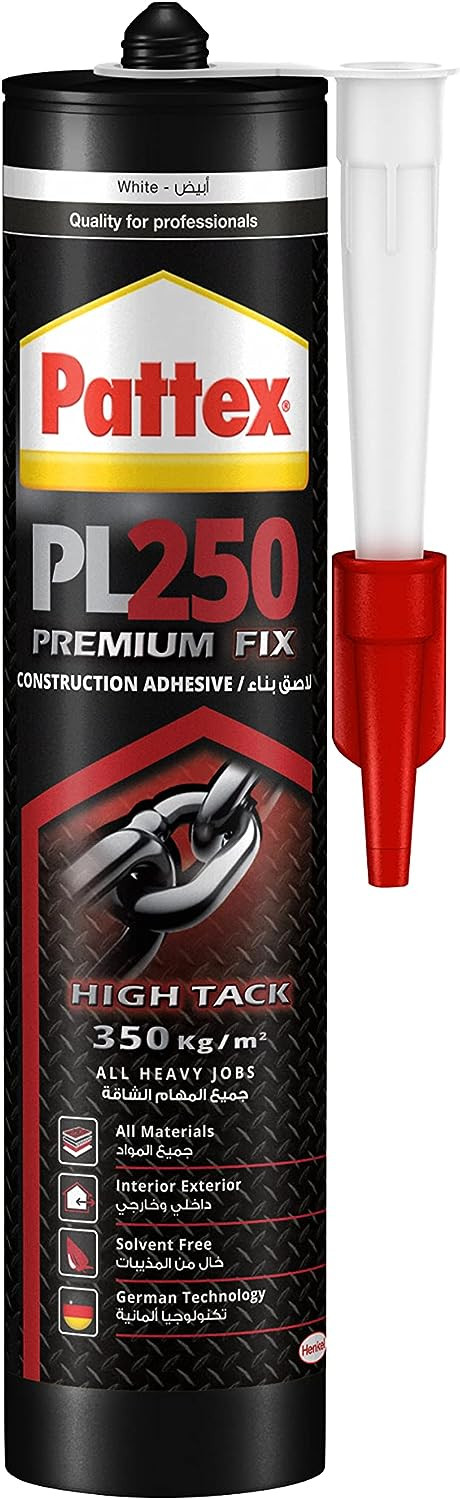 • High Tack – A repositionable adhesive with high initial tack, Pattex PL250 Premium Fix has 350kg/m²* adhesion for heavy duty projects that require precision placement.