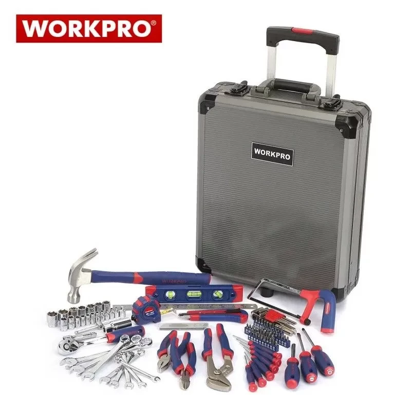 includes hammer, level, tape measure, hex key, sockets, pliers, saws, snap-off