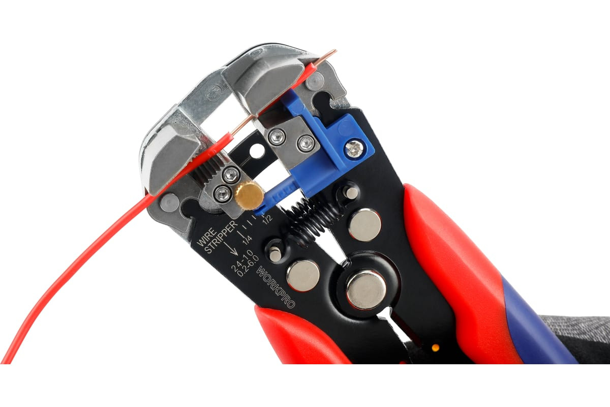 • The WORKPRO 3in1 WP291007 wire stripper has a self-adjusting mechanism: the wire can be stripped by adjusting the cutting blade opening precision, which is ideal for copper and aluminum cables from 10-24 AWG