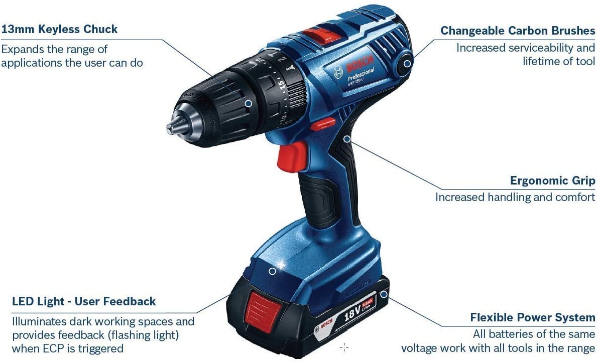 • فرش الكربون القابلة للتغيير تعمل على إطالة عمر المحرك. حماية الخلايا الإلكترونية تحمي الأداة والبطارية. ملاحظات حالة الأداة يتيح لك مؤشر LED الوامض معرفة ما إذا تم قطع الأداة لحماية نفسها بسبب حماية الخلية الإلكترونية أو الحمل الزائد الحالي. عزم دوران مُحسَّن للقيادة اللولبية وسرعة الثقب بفضل علبة التروس الكوكبية ذات السرعتين. تغيير مريح للملحقات مفتاح أقل للظرف يفتح ويغلق بسهولة. تحكم سهل ودقيق في عدد الدورات في الدقيقة بفضل السرعة المتغيرة. بطارية متوافقة بنسبة 100٪ مع جميع الأدوات ضمن فئة الجهد الخاصة بها ، اختر بطارية XL لأطول وقت تشغيل أو البطارية المدمجة للحصول على أفضل معالجة. البيانات الفنية: نظرة عامة على المواصفات: عزم الدوران (ناعم / صلب / أقصى) - 21/54 / - NM No-load speed (السرعة الأولى / الترس الثاني) - 0-450/0 - 1700 rpm نوع البطارية - Lithium-ion كحد أقصى. معدل التصادم - 0 نبضة في الدقيقة جهد البطارية - 18 فولت ضبط عزم الدوران - 20 + 2 قطر الثقب: الحد الأقصى. قطر الحفر في الخشب - 35 ملم قطر الحفر في الفولاذ - 10 ملم قطر الحفر في البناء - 8 مم قطر المسمار: كحد أقصى. قطر المسمار - 10 ملم البند متضمن: 2 × 1.5 أمبير بطارية ليثيوم أيون AL 1814 CV شاحن حقيبة حمل اللون - أزرق العلامة التجارية: Bosch مصدر الطاقة: البطارية النوع: المطارق الكهربائية رقم الموديل: GSB180-LIAre البطاريات اللازمة لتشغيل المنتج أو هل هذا المنتج بطارية: نعم سلعة خطرة أو مادة خطرة ، مادة أو نفايات يتم تنظيمها للنقل و / أو التخزين و / أو التخلص منها؟ : لا