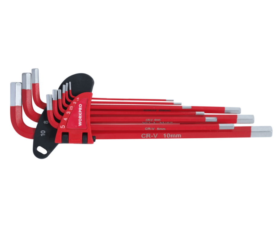 • 9 قطع مفاتيح سداسية متريّة: 1.5 ، 2 ، 2.5 ، 3 ، 4 ، 5 ، 6 ، 8 و 10 مم