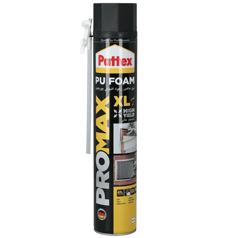 · Pattex Promax XL عبارة عن رغوة PU متعددة الأغراض تُستخدم لأغراض الربط والختم والتعبئة. إغلاق المفاصل حول النوافذ والأبواب. يملأ الشقوق والثقوب والفتحات الكبيرة.