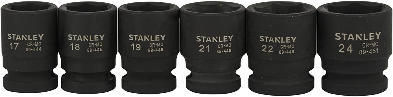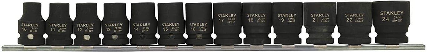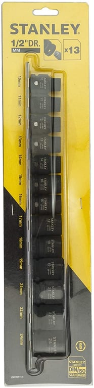 • 1/2 بوصة طقم لقم، المقاسات: 10 مم ، 11 مم ، 12 مم ، 13 مم ، 14 مم ، 15 مم ، 16 مم ، 17 مم ، 18 مم ، 19 مم ، 21 مم ، 22 مم ، و 24 مم.