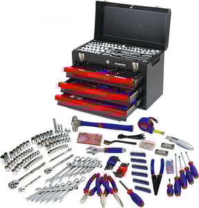 المحتويات: (1) سكين فائدة ، (20) شفرات سكاكين متعددة الاستخدامات ، مفك براغي) ، مفك براغي مغناطيسي ، لقم مفك براغي تم التعامل معها (6) مفك براغي دقيق ، مجموعة مفاتيح سداسية متري ، (11) SAE hex Hey set's ، 6 "زراديات طويلة الأنف ، 6 "كماشة قطرية ، (1) 6" كماشة مركبة ، (1) مطرقة كروية 16 أونصة ، (1) 7.5 متر (25 قدمًا) شريط قياس ، (8) مفاتيح ربط متري: 8 ، 10 ، 11 ، 12 ، 13 ، 14 ، 15 ، 17 ملم ، (8) مفاتيح ربط SAE: 1/4 "، 5/16" ، 3/8 "، 7/16" ، 1/2 "، 9/16" ، 5/8 "، 3/4 "، (1) مفتاح ربط قابل للضبط مقاس 8 بوصات ، (1) أداة تعرية ، (55) طقم موصل ، (40) ربطة كبل ، (90) مجموعة أدوات ، (1) 1/4" مقبض دكتور اسئلة ، (1) 3 / 8 "مقبض دكتور اسئلة ، (1) 1/2" مقبض دكتور اسئلة ، (10) 1/4 "6 نقاط SAE د. المقابس: 5/32 "، 3/16" ، 7/32 "، 1/4" ، 9/32 "، 5/16" ، 11/32 "، 3/8" ، 7/16 "، 1/2 "، (10) 1/4" 6 نقاط متري د. مآخذ: 4 ، 5 ، 6 ، 7 ، 8 ، 9 ، 10 ، 11 ، 12 ، 13 مم ، (10) 3/8 "6 نقاط SAE د. المقابس: 1/4 "، 5/16" ، 3/8 "، 7/16" ، 1/2 "، 9/16" ، 5/8 "، 11/16" ، 3/4 "، 13/16 "، (11) 3/8" 6 نقاط متري د. مآخذ: 7 ، 8 ، 9 ، 10 ، 11 ، 12 ، 13 ، 14 ، 15 ، 17 ، 19 مم ، (8) 3/8 "12 نقطة SAE د. المقابس: 5/16 "، 3/8" ، 7/16 "، 1/2" ، 9/16 "، 5/8" ، 11/16 "، 3/4" ، (11) 3/8 "12 مقياس النقاط: 7 ، 8 ، 9 ، 10 ، 11 ، 12 ، 13 ، 14 ، 15 ، 17 ، 19 ملم ، (6) 1/2 "6 نقاط SAE د. المقابس: 1/2 "، 9/16" ، 5/8 "، 11/16" ، 3/4 "، 7/8" ، (6) 1/2 "6 نقاط متري د. المقابس: 14 ، 15 ، 17 ، 18 ، 19 ، 21 ملم (1) 1/2 بوصة × 3/8 بوصة محول ، (1) محول 3/8 بوصة × 1/4 بوصة ، (1) شريط تمديد 1/4 بوصة × 3 بوصة ، (1) 3/8 "X3" قضيب تمديد ، (1) 3/8 "x6" قضيب تمديد ، (1) 1/2 "x5" قضيب تمديد ، (2) 3/8 "مقابس شرارة: 13/16" ، 5 / 8 ".